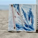Alle Bilder meiner Reihe entstehen auf gebrauchten und ausrangierten Segeln von Sport- und teilweise Traditionssegelschiffen. Jedes Bild ist ein Unikat und ist gekennzeichnet durch die typischen Details eines alten Segeltuchs (Nähte, Segelnummern od. Flicken). Vereinzelt ergänze ich das Bild mit einer seitlichen Applikation, ein ausgewähltes Stück des Segels wird hierbei seitlich um den Rahmen befestigt und mit einem passenden Tampen bzw. Tauwerk ordnungsgemäß und ´seemännisch´ mit Hilfe eines Seemannsknotens am Rahmen befestigt. Kein Bild gleicht dem Anderen, da jedes Segel seine ganz eigene Geschichte in sich trägt und diese in das Motiv mit hineinwebt.